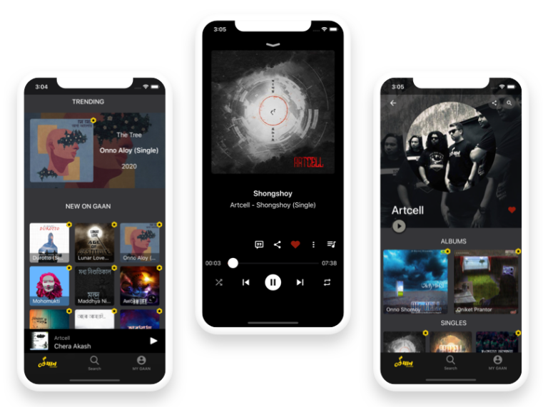 GAAN is a music streaming service exclusive to Bengali Music and Musicians. It is the first independent music service provider for Bangla Music and Bangladeshi Musicians.
